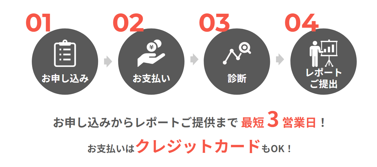 ※診断とレポート提出の費用です。結果を踏まえた口頭でのご説明はサービスに含まれておりません。