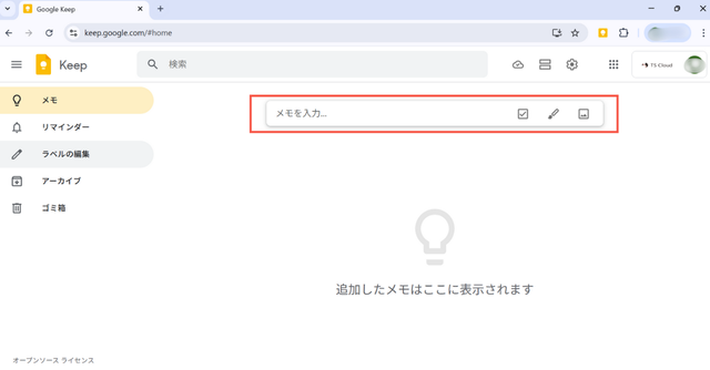 - 画面の上部にある「メモを入力…」と表示された欄をクリックします。