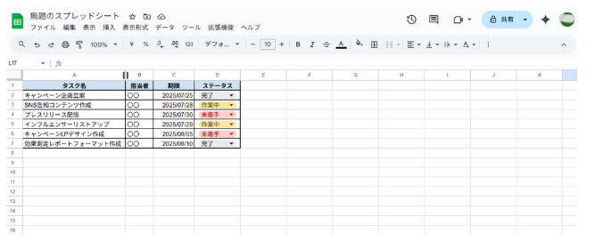 ➤Google スプレッドシート|一覧でタスクの進捗を管理