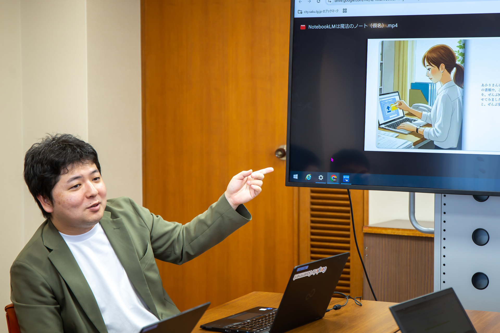 やはり Gemini や NotebookLM といった AI 、特に NotebookLM による変化が大きいですね。最近、佐久市では電子決裁や勤怠管理などに新しいシステムが導入され、何百ページもある膨大なマニュアルが作られました。これらのマニュアルを NotebookLM に学習させることにより、職員は質問を投げかけるだけで、システム自体のマニュアルと佐久市独自のルールに基づいた的確な回答を瞬時に得られるようになりました。今までは、使い方がわからないと各システムのベンダーに問い合わせを行い、欲しい回答を得るのに時間がかかりがちだったのですが、この状況も大きく改善されましたね。