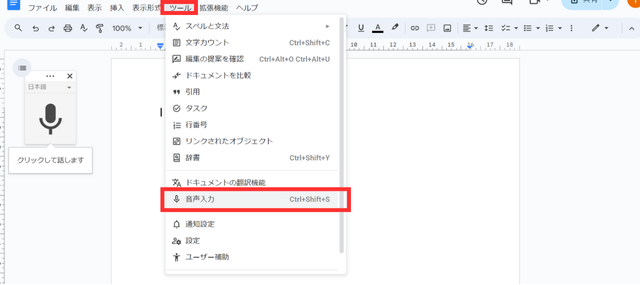 参考:Google ドキュメント エディタ ヘルプ「音声で入力、編集する」