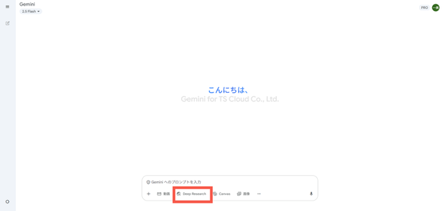 入力したら「Deep Research」をクリックした上で、プロンプトを送信します。