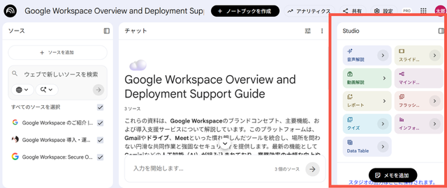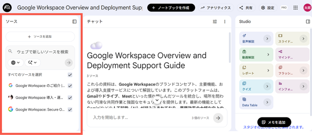 ※Notebooklm in Pro は Google Workspace の Business Standard 以上のプランで使用できます。