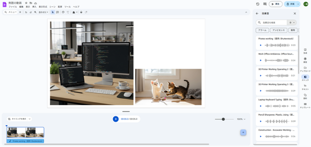 作成した動画を再生して確認し、長さや音声、アニメーションなどを調整していきます。Google スライドに似た直感的な操作感で、既存の画像を別の画像に差し替える、音楽やナレーションを加えるなども容易です。
