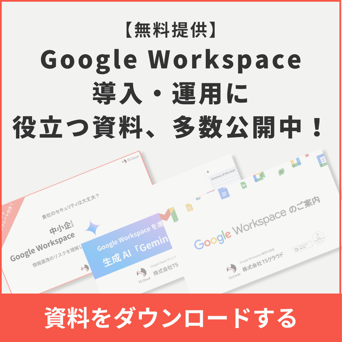 プラン選定をはじめ、Google Workspace の導入には様々な検討事項があります。そんなお悩みの解決に役立つ「導入実践ガイド」「活用事例集」など3つの資料を無料で進呈中です。導入後の成功イメージを具体的に描くためにお役立てください。
