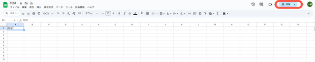 - 共有したいスプレッドシートの右上にある「共有」をクリック