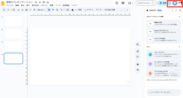 - 画面右上の Gemini マーク( ◆ のような形)をクリック